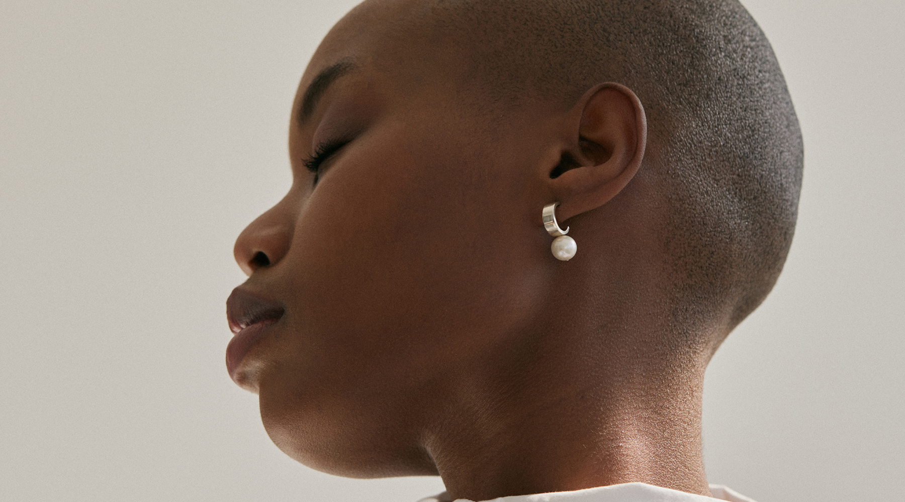 Inspired by an African sunrise, these minimalist earrings feature a single circular tube embracing a beautifully nested cultured pearl inside. This design embodies the...